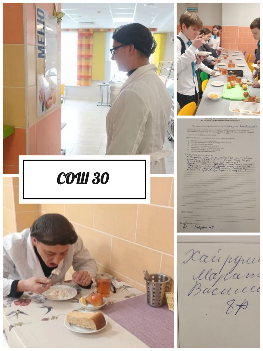 Еженедельно в школьной столовой МБОУ «СОШ № 30» г. Набережные Челны проходит родительский контроль организации и качества питания учащихся.