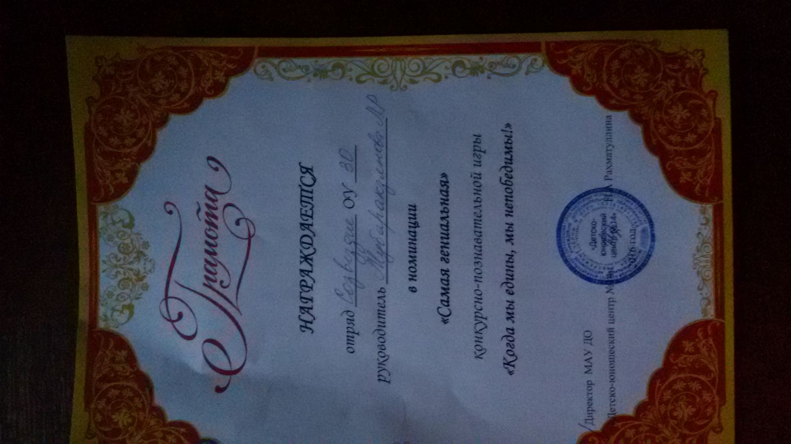 6Г городская программа СНТ, 01.11.2016 победитель в номинации "Самая гениальная" конкурсно-познавательная игра