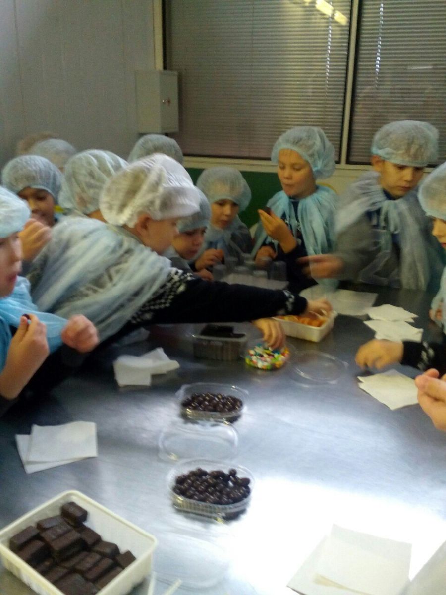 Ребята понаблюдали за процессом изготовления конфет и узнали очень много нового. По окончанию экскурсии ребята продегустировали сладости и получили сладкие подарки. Всем очень понравилось!!!