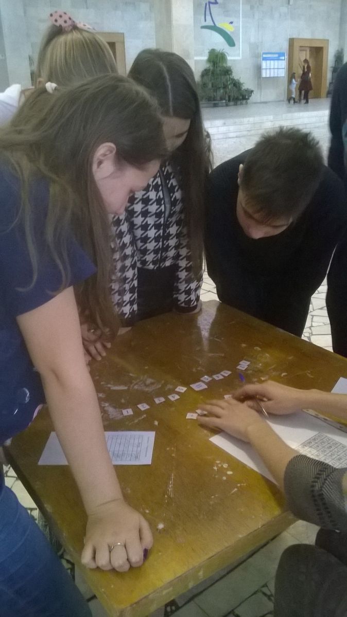 Сегодня 2.11.2016 года две команды "Атомы" и "Сверхразум" из 7В класса приняли участие в очередной игре "Магия интеллекта", которая прошла в ГЦДТ. Данная игра включала в себя прохождение по 8 станциям, где учащиеся должны были проявить смекалку, ум и логику, задание давалось на ограниченное время. Участникам игра очень понравилась и они остались довольны полученными очками.