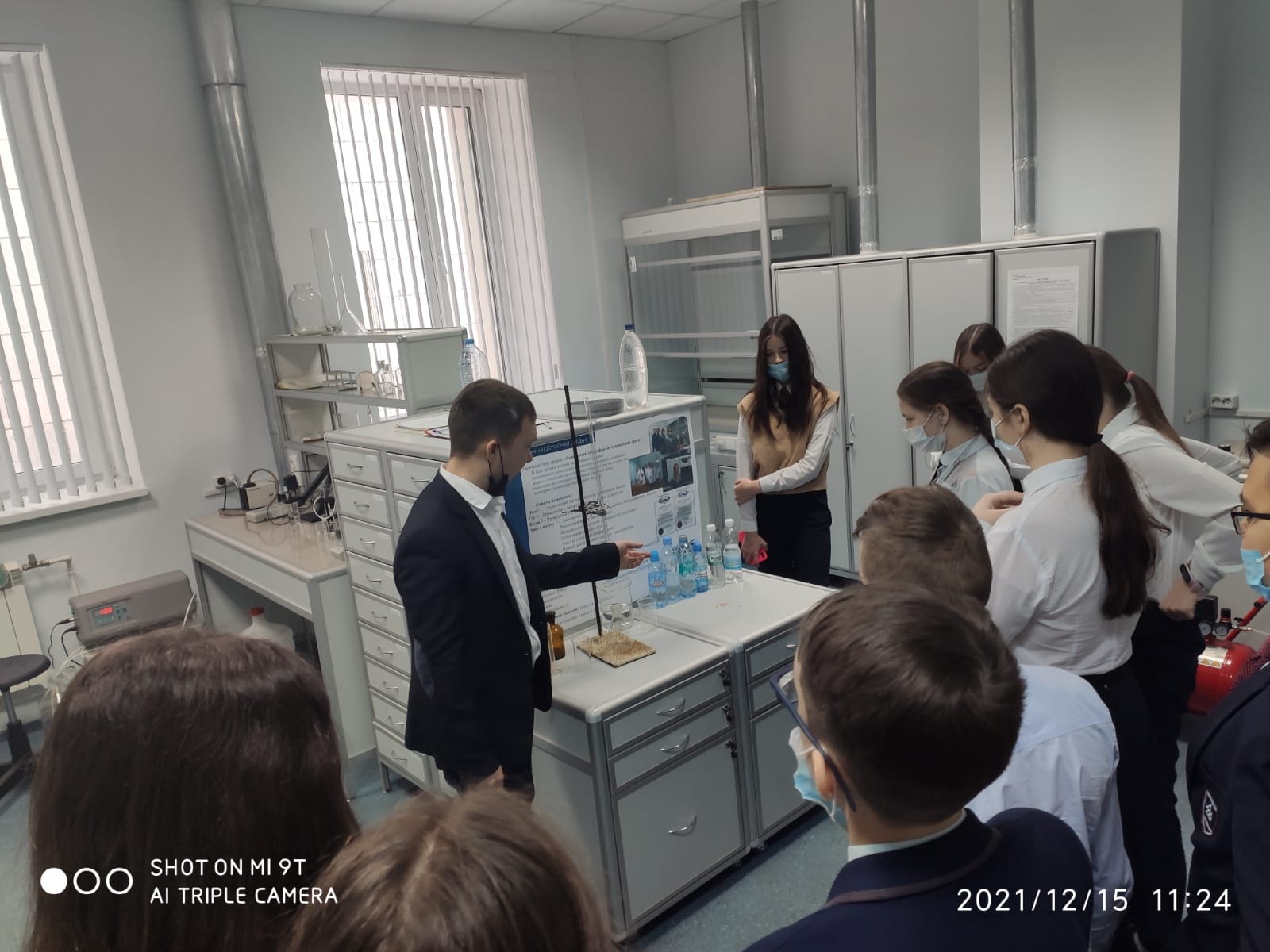 В Инжиниринговом центре НЧИ КФУ прошло очередное занятие для учеников 5 «Е», и 7 «Е» классах. Доцент кафедры химии и экологии Фазуллин Динар Дильшатович провёл для ребят урок по темам: «Загрязнение и качество воды водных объектов» и об экологической безопасности . Ребята с интересом слушали преподавателя и задавали свои вопросы, а также приняли участие в небольшом опыте.