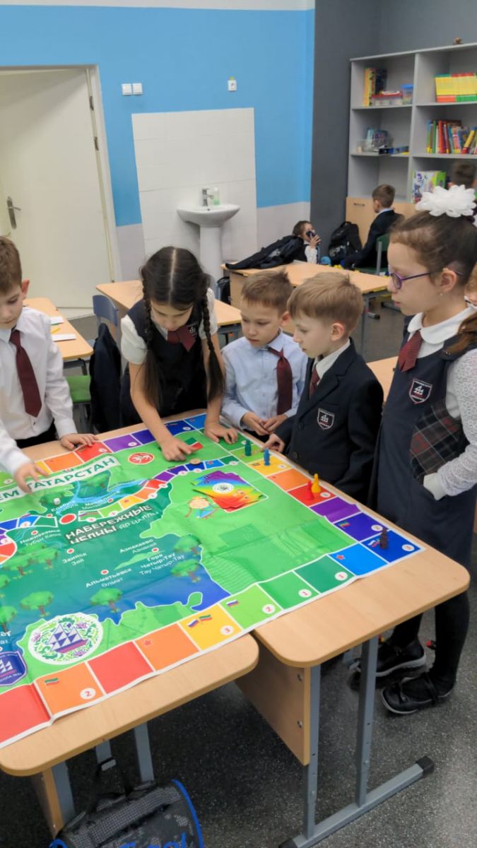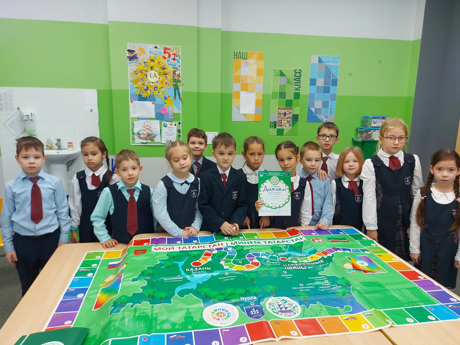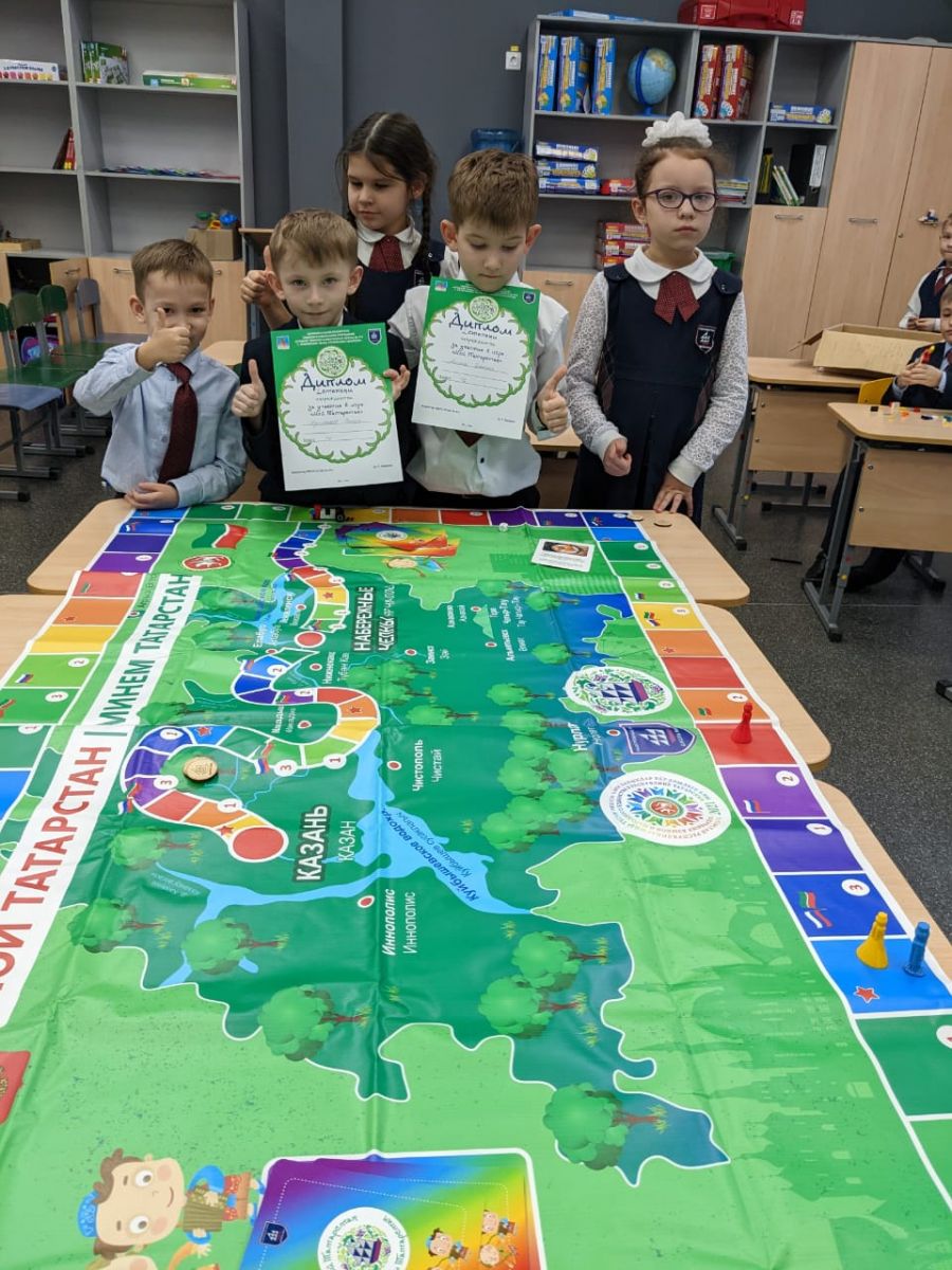 В рамках реализации гранта «Поддержка муниципальных дошкольных образовательных организаций и муниципальных общеобразовательных организаций в реализации проектов, направленных на сохранение и развитие языков, традиций, культур народов, проживающих на территории Республики Татарстан, в рамках Года родных языков и народного единства» в школе прошли ряд турниров по настольной игре «Минем Татарстан» среди 1-х классов с воспитанием на родном татарском языке. По итогам игры были определены следующие победители: