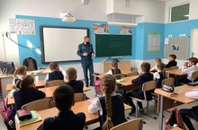 Ход проведения линеек в классе: видеопоздравление от администрации школы, обзорный ролик по школе, классные часы