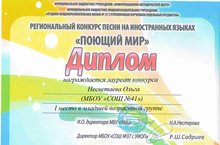 25 декабря на базе СОШ №37 прошел Региональный конкурс песни на иностранных языках. Нашу школу представляла ученица 6 Б класса Несветаева Ольга (учитель: Матросова С.Ф.) В конкурсе участвовало более 40 человек. Оля получила Диплом I степени. Поздравляем и желаем дальнейших творческих успехов!