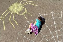 Один из символов детства — рисунки на асфальте мелками. Они быстро стираются и смываются дождём, однако для ребёнка важен сам процесс. А какими разнообразными могут быть игры с мелками! Волшебство рисунков на асфальте позволяет погрузиться в увлекательный мир забавных сюжетов.