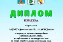 Подведены итоги муниципального этапа республиканского конкурса-акции по сбору отработанных источников тока. Наш детский сад, принимавший активное участие в конкурсе, стал обладателем диплома призёра за хорошую организацию работы данного этапа конкурса. Эта экологическая акция была нацелена на реализацию таких задач, как информирование детей и их родителей о негативных последствиях, которые возникают при попадании отработанных источников тока в почву и воду; воспитание экологической культуры подрастающего поколения; вовлечение детей и родителей в практическую деятельность по раздельному сбору бытовых отходов; формирование у подрастающего поколения чувства ответственности за чистоту окружающей среды. Благодарим всех, кто принимал активное участие в данной акции, желая сделать нашу планету чище и лучше!