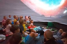 Планетарий – это захватывающее зрелище, где при помощи специального устройства демонстрируется искусственное звёздное небо. Так, в спортивный зал нашего детского сада приехал передвижной планетарий, где в доступной форме детям было рассказано о планетах солнечной системы, межгалактических пространствах и первых покорителях космоса. Также детям представилась возможность увидеть очень близко солнце и красивые явления космоса. Дети совершили виртуальное космическое путешествие с кометой и узнали, как появился единственный спутник Земли – Луна. Море восторженных впечатлений и чувств вызвало посещение планетария воспитанниками детского сада: звёздное небо над головой, загадочный мир планет, Млечный путь и это непередаваемое ощущение себя частицей громадного мироздания. Ребята получили огромный заряд положительных эмоций и с восторгом делились своими впечатлениями. Эти мысли, чувства, впечатления и знания, полученные о космосе, надолго останутся в детских сердцах.
