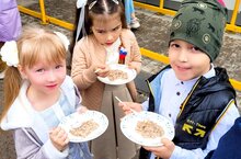 В годы войны боевой дух солдата должны были поддерживать не только общие идеи и поставленные задачи, но и правильно организованное питание. Утренняя трапеза призвана наполнять энергией и заряжать бодростью. А главным "поставщиком" сил, бодрого настроения и крепости духа считается каша. Каша – одно из самых распространенных блюд русской кухни. Она питательна, полезна, сытна и легко усвояема организмом. Не забывали о ней и во время Великой Отечественной войны. Полевая кухня всегда шла впереди войска. Задачей поваров было приехать на место стоянки раньше солдат и ждать их с горячей едой. Одним из главных блюд бойцов Советской армии по время Великой Отечественной войны была именно фронтовая каша из гречки и тушенки. Отсюда и название - солдатская каша. Варили её в большом количестве, в огромных котлах над костром. По легенде, в одном из походов, когда запасы продуктов подходили к концу, начальство предложило сварить кашу для солдат из всего, что осталось в наличии. В дело пошли не только остатки сала и мяса, но и крупы: горох, перловка, пшено и гречка. Солдаты были накормлены, а это считалось главным залогом успешного сражения. На празднике в честь Дня Победы мы с ребятами перенеслись в далёкие времена, когда наши деды и прадеды в перерывах между боями устраивали привал, и отведали горячей солдатской каши, с любовью и теплотой приготовленной нашими поварами. Каша получилось ароматной и вкусной. И взрослые, и дети получили заряд восторженных эмоций. Спасибо нашим поварам за старание!