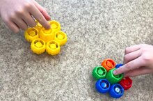 Развитие мелкой моторики помогает малышу совершенствовать свои навыки и способности, укрепляя контакт с окружающим миром. Для развития моторики существует множество специальных игр. Одним из вариантов интересных и полезных игр на развитие моторики являются игры с крышками от пюре «ФрутоНяня». Крышки соединяются между собой с помощью специальных креплений, превращаясь в полноценный конструктор. Из него можно собирать даже трёхмерные фигуры. Эти крышки разноцветные, поэтому с ними можно придумать много увлекательных игр. Использование крышек стимулирует развитие простых координаторных навыков ребёнка, улучшая его взаимодействие с окружающей средой. Такие крышки являются одним из любимых материалов наших ребят на занятиях по конструированию.