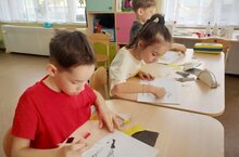 Детей очень увлекает изготовление поделок из цветной бумаги. Для того чтобы совершенствовать навыки работы с цветной бумагой можно использовать технику обрывной аппликации. Эта техника полезна для формирования творческого мышления. Ребёнок учится композиционному размещению рисунка на листе, аккуратному и ровному приклеиванию кусочков цветной бумаги, обдумывает цветовое решение будущей картинки. При этом активно идёт развитие мелкой моторики пальцев рук. Эти факторы дисциплинируют процесс мышления и фантазии. Данная техника позволяет передавать фактуру образов. Например, густая травка или пушистый заяц. Ребёнок рвёт бумагу на кусочки разного размера и цвета. Затем составляет из них рисунок и приклеивает. В 9 группе ребята увлечённо работают в данной технике.