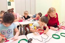 В эпоху информационных технологий образовательный процесс не стоит на месте и активно совершенствуется путём внедрения инновационных проектов и идей. Наглядным примером этому служит кружок 3D-моделирования в нашем детском саду с использованием 3D-ручки. Все дети - большие любители творить, а рисование — самый доступный для малышей вид творчества. И если ещё недавно юные художники творили при помощи карандашей, фломастеров и красок, то современные технологии, можно сказать, подарили ребятам волшебную палочку наших дней — 3D-ручку. Актуальность использования 3D-технологий обусловлена обширным применением трёхмерной графики в различных сферах деятельности, знание которой становится всё более значимым для полноценного развития личности. В процессе использования 3D-ручки дети шаг за шагом отрабатывают и постигают навыки создания трёхмерных моделей. Теперь наши юные творцы могут не только рассматривать свои рисунки, но и потрогать. Использование современных устройств в работе с дошкольниками - неотъемлемая часть воспитательно-образовательного процесса. Такой подход в работе с детьми обогащает их новыми знаниями, развивает творческие и интеллектуальные способности. 3D-ручка развивает мелкую моторику - дети совершенствуют навыки точного выполнения мелких движений пальцами и кистями. 3D-ручка содействует сосредоточенности, усидчивости, развитию воображения, позволяя вовлечь ребёнка в интересный и увлекательный процесс. На первом занятии кружка ребята самостоятельно изготовили арбузные дольки, с восторгом и радостными впечатлениями демонстрируя результаты своей работы друг другу. Идей ещё впереди много и ребята с нетерпением ждут их воплощения на очередном увлекательном занятии с руководителем кружка 3D-моделирования Натальей Сергеевной.