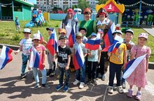 Лето - это море радости, веселья и прогулок на свежем воздухе под ласковыми лучами солнца. Однако и в летний период необходимо грамотно организовывать активный отдых детей для всестороннего гармоничного развития их творческих способностей, совершенствования личностных возможностей и приобщения к культурным, нравственным и патриотическим ценностям. Сегодня вся наша страна празднует замечательный праздник – День России! Наши дети – будущее нашей страны, поэтому очень важно с детства донести до юного поколения образы, воспитывающие патриотизм, отвагу, преданность, самоотверженность, гордость, уважение и любовь к Родине, её народам, ценность и значимость государственной символики. Поэтому и подготовку к празднику мы начали задолго до проведения этого мероприятия – в каждой группе с ребятами были проведены беседы о флаге, гимне России, ребята подготовили плакаты, аппликации и рисунки с символикой нашей страны. В рамках празднования Дня России с ребятами была проведена квест-игра "Поиск флага". Собравшись дружно на площадке сада, дети в поисках флага встретились со сказочными героями Василисой, Кощеем, Пиратом, Бабой Ягой. Ребята с лёгкостью справились с заданиями викторины на знание тематики праздника. В ходе праздника наши весёлые малыши задорно устраивали танцевальные флешмобы и зажигательно водили хороводы, проникновенно пели песни о Родине и без труда отгадывали загадки, играли в подвижные спортивные игры и вспоминали со сказочными героями русские сказки и поговорки. Наш праздник получился увлекательным, познавательным, ярким и зрелищным. Сегодня праздник у нашей великой и несокрушимой Родины. Хотелось бы пожелать вам всегда гордиться своей страной, совершать поступки, способствующие её процветанию, не забывать родные традиции и культуру и быть счастливыми, живя в России! Желаем мирного и голубого неба! Пусть в ваших сердцах всегда будет солнце и праздник. Пусть ваши семьи будут счастливыми и здоровыми, а наша страна - процветающей и преуспевающей во всех отношениях! С праздником!