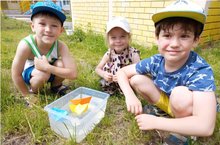 Игры с водой - это естественная и доступная для каждого ребёнка форма деятельности. Вода - естественный и безопасный материал, который даёт большие возможности для развития ребёнка. При этом игры с водой положительно влияют на речевое развитие и сплочение детского коллектива. Увлекая детей, они формируют благоприятный психологический настрой, способствуют снижению эмоционального напряжения и скованности, развивают и совершенствуют коммуникативные навыки, мелкую моторику, память, внимание, воображение, познавательный интерес. Сама фактура воды оказывает приятное успокаивающее воздействие. 16 июня отмечается День отпускания в дальнее плавание трёх бумажных корабликов. Так, устроив по этому поводу весёлое развлечение, ребята на прогулке изготовили бумажные кораблики в технике оригами, спустили их на воду, помахали рукой и пожелали доброго пути. С давних времён считалось, что именно в этот день очень часто дуют сильные ветры. Именно поэтому в этот день нужно отправлять в дальнее плавание три бумажных кораблика. Согласно поверью эти три кораблика будут нести всем нуждающимся Веру, вселять Надежду и дарить Любовь. А также придавать уверенность, что за эти идеалы всегда стоит бороться. А можно в этот день, превратив за несколько минут любой листок бумаги в бумажный кораблик, написать на его борту своё заветное желание и отправить в дальний путь по воде. Гонимый могучими ветрами, кораблик обязательно принесёт удачу и исполнение желания.