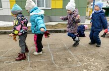 На асфальте классики чертит мел цветной, девочки и мальчики заняты игрой! 04.05.2022