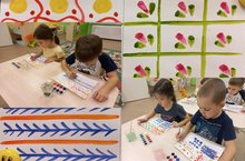 Художественная деятельность - ведущий способ эстетического воспитания и основное средство художественного развития детей дошкольного возраста. Изобразительное искусство располагает многообразием материалов и техник. Ребенку обычно мало привычных, традиционных способов и средств, чтобы выразить свои фантазии.Поэтому сегодня мы решили познакомиться с техникой рисования по ткани - батик. Искусство расписывать ткань известно с древнейших времен. Само слово «батик» (batik) пришло к нам из Индонезии. Словом «ba» индонезийцы называли хлопчатобумажную ткань. Слово «tik» переводится как «капля» или «точка». Украшать художественной росписью можно любую одежду и аксесуары, а также предметы интерьера или создавать отдельные панно. Мы с ребятами вспомнили народные праздники, и, как наряжались взрослые и дети в костюмы, украшенные элементами декоративно прикладных узоров: хохломские узоры, филимоновские, гжельские, дымковские. До лета ещё далеко, но нам уже сегодня захотелось придумать свои костюмы к яркому празднику лета. Поэтому вооружившись кисточками и красками, мы перенесли свои фантазии на бумагу и украсили свои альбомные листы дымковскими барышнями, семеновскими матрешками, филимоновскими лошадками, посудой с гжельскими и хохломскими узорами.