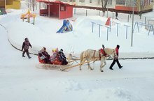 Зима – это время забав, а также прекрасная возможность любоваться природой. Особенно красива природа в солнечный день, когда небольшой мороз пощипывает нос и щеки, а снег искрится как хрусталь. Для того чтобы зимние деньки пролетали весело, активно и быстро, еще много веков назад люди придумали зимние развлечения, которые по сей день помогают проводить дни насыщенно, интересно и с пользой для здоровья. Одним из таких развлечений является катание на санях, запряженных лошадьми. Сегодня, в яркий морозный солнечный день, когда завораживающая красота природы напоминает стихи известного классика Александра Сергеевича «Зимнее утро», двор нашего садика необычайно красив, а главное очень оживлен. Детский восторженный смех разбавляет звон бубенцов и колокольчиков – наши ребята катаются на санях. Пару веков назад катание на санях с бубенцами было любимым зимним времяпровождением. Русские сани - один из ярких символов нашей национальной культуры. Издревле катания на санях, запряженных лошадьми, несли в себе не только развлечение, но и традиционный обряд: звон бубенцов, шум и гам разгоняли злых духов и должны были защитить ездоков на все время до следующей зимы. А самое главное звон колокольчиков приближал весну. Послушная лошадка, веселый извозчик, мелодичный звон колокольчиков, легкий морозец и искрящийся снег – всё это подарило нашим ребятам настоящую сказочную атмосферу, заряд бодрости, веселья и ярких незабываемых эмоций!