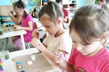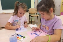 Самый доступный спсособ развить у малыша творческое начало - заинтересовать его рисованием. В процессе творчества у малыша развивается воображение, образное мышление и вкус. Однако навыки изобразительной деятельности у дошлколят еще слабо развиты, а формообразующие движения не достаточно сформированы. Главное в работе любого педагога, чтоб занятия приносили детям только положительные эмоции. Необходимо заботиться о том, чтобы деятельность ребенка была успешной - это будет его радовать и подкреплять его уверенность в собственные силы. Поэтому в работе наших педагогов часто применяется нетрадиционная техника рисования - рисование пальчиками или же ладошками. Данный вид рисования хорошо развивает мелкую моторику, что влияет не только на умение малыша использовать свои ручки, но и способствует развитию речи. Это также отличный рефлекторный массаж. Рисуя в такой технике, ребенок учится строить причинно-следственные связи, учится логически мыслить. Более того, с помощью пальчиковых красок ребенок получает представление о том, что такое цвет и какие цвета бывают. Эта несложная, но очень интересная техника очень нравится детям всех возрастов. Наши маленькие художники с большим удовольствием создают свои шедевры пальчиками. Вот и сегодня, предаваясь воспоминаниям об ушедшем ярком и цветущем лете, ребята решили изобразить луговые цветы в данной технике. Рисунки у ребят получились очень нежные, красивые. Техника рисования достаточно проста, поэтому ребят радует не только результат их стараний, но и сам увлекательный процесс рисования.