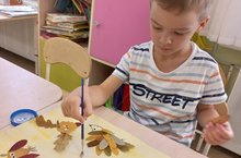 Каждый человек отмечает красоту листьев именно осенью. Действительно, хоровод кружащих листьев различного окраса не оставит равнодушным никого. А уж для малышей данное явление кажется почти магическим. Не зря так много произведений искусства, вдохновленных этим прекрасным временем года. Развивать чувство декоративности, воспитывать интерес к осенним явлениям природы, эмоциональную отзывчивость на красоту осени - все эти задачи успешно реализовываются педагогами каждой группы. Для самых маленьких наших воспитанников стало неожиданным открытием, что на листочках можно рисовать. Яркий осенний лист — необычная замена привычной для нас бумаге и прекрасный материал для творчества. Ребята же постарше создают целые сюжетные картины из листьев. Тем самым, создавая в такой необычной технике свои маленькие произведения искусства, наши ребята учатся замечать, видеть и чувствовать красоту природы, гармонию красок и цветов.
