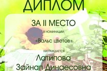 Завершился конкурс "Во саду ли во дворе". Старания нашего инструктора по физической культуре Латиповой Зайнап Динаесовны в номинации "Вальс цветов" не прошли даром. И вот еще один диплом в копилке наших достижений. Благодарим наших сотрудников за активное участие в конкурсах. А Зайнап Динаесовну мы поздравляем с победой, с очередным достижением и светлой радостью в сердцах коллег от успеха. Желаем всегда двигаться вперёд и покорять любые вершины. Пусть результат стараний всегда превосходит любые ожидания! Мы всегда очень гордимся успехами наших коллег.