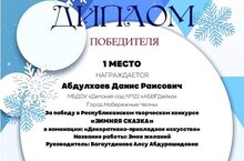 Зима — это не просто время холодов и снега, а волшебная пора, наполненная красотой и чудесами. Снежинки, падающие с неба, словно крошечные драгоценные камни, превращают каждый уголок в сказку. Зимние праздники, Рождество и Новый год создают атмосферу тепла, радости и света, когда мир кажется особенно ярким и живым. Для детей это идеальное время, чтобы воплощать свои впечатления и творческие идеи в работах, которые передают волшебство зимнего времени. Поздравляем нашего воспитанника Абдулхаева Даниса с успешным участием в Республиканском творческом конкурсе "Зимняя сказка". Его работа "Зимние мандаринки" в номинации "Декоративно-прикладное искусство" принесла Данису диплом II степени, а творческая работа "Змея желаний" - диплом I степени. Гордимся Данисом, его творческими способностями, успехами, достижениями. Поздравляем также творческого наставника Даниса - воспитателя Алсу Абдурашидовну. Желаем Данису дальнейших успехов!
