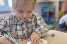 В 7 группе у детей прошла подгрупповая работа с ножницами «Парикмахерская» с воспитателем Айгуль Занифовной. Цель: Учить детей действовать ножницами, правильно держать их, сжимать и разжимать кольца. -