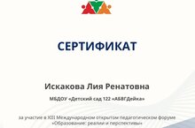 Среди участников форума была и наш воспитатель Лия Ренатовна. Поздравляем с вручением сертификата участника! -