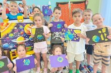 Со слов «Если очень захотеть, можно в космос полететь!» началось мероприятие, посвящённое Дню космонавтики, в группе 4. В ходе бесед с воспитателем Лией Ренатовной ребята освежили свои знания о форме планет, их размерах, о движении вокруг своей оси. Познакомились с космонавтами, уточнили значение слов «скафандр», «спутник», «созвездие», «метеорит», «орбита», «телескоп», рассматривали фотографии первых спутников, космических станций и героев космоса, о Белке и Стрелке - первых космических собаках - путешественниках, о первом космонавте - Юрии Гагарине и о первой женщине - космонавте - Валентине Терешковой, рассуждали о профессии космонавта. Рассказы о космосе ребята закрепили творческой деятельностью, отправив в космос свои цветные ракеты.