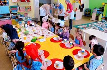 Здоровое питание - вопрос актуальный в современном мире. Дети зачастую поддаются яркой рекламе заведений быстрого питания и в выборе между полезной и вкусной, но вредной пищей отдают предпочтение последней. Поэтому растёт осознание того, что необходимо возрождать и развивать культуру правильного и здорового питания. С этой целью в нашем саду прошло увлекательное мероприятие "День смузи", направленное на создание условий по формированию у детей дошкольного возраста представлений о продуктах, приносящих пользу организму, об организации здорового питания. Наши педагоги провели с детьми беседы на тему здорового питания, обогащающие знания детей о пользе витаминов и их значении для здоровья человека, режиме питания, о важности употребления овощей и фруктов в пищу. Проведённые с ребятами тематические игры и викторины позволили расширить представление детей о продуктах питания, важности сбалансированного питания для здоровья, умении выбирать полезные продукты. Мамы и папы воспитанников провели для детей мастер-класс "Готовим смузи". Ребята узнали что такое смузи, о полезных свойствах этого вкусного напитка, из чего и как его готовить. Огромное спасибо нашим замечательным родителям и воспитателям за организацию, подготовку и активное участие в таком познавательном и позитивном мероприятии, за созданные на радость всем аппетитные фруктовые коктейли, за красиво оформленную сервировку стола. Всё это принесло всем участникам мероприятия отличное настроение и восторженные впечатления. День здорового питания в детском саду – это пропаганда здорового образа жизни, воспитание у детей и их родителей заботливого отношения к своему организму. Проведение таких дней стало одной из добрых традиций нашего детского сада.