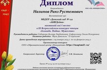 В нашей стране много праздников, однако самый великий - это День Победы в Великой Отечественной войне, поазднуемый 9 мая. Война коснулась каждой семьи. И в каждой семье были люди, отдавшие жизнь, своё детство, своё здоровье, свой покой, вставшие на защиту своей Родины. Тема войны всегда привлекала к себе внимание как читателей, так и авторов литературных произведений. Стихи на военную тему рождались из-под пера авторов и в годы войны, и в послевоенное время. Издаются они и сегодня. Тысячи писателей и поэтов отправились на фронт. С оружием в руках они самоотверженно защищали Родину, разделяли страдания, опасности, лишения военных дней вместе со всеми. Их патриотические произведения вдохновляли людей на подвиги. Поэзия в годы войны занимала огромное место в духовной жизни миллионов людей - она укрепляла веру в победу и помогала переносить все тяготы и испытания. Проходят десятилетия, на смену одному поколению приходит другое, но память о Великой Победе остаётся в наших сердцах и в строках поэтов и писателей. Для детей проводятся всевозможные конкурсы на данную тематику. Один из таких - III Всероссийский конкурс чтецов "Блокада. Подвиг. Мужество". В данном конкурсе принял участие воспитанник 1 группы Назипов Раяз Рустемович. Работа Раяза - "Муса Джалиль "О героизме" - покорила членов жюри конкурса и принесла ему заслуженную победу. Поздравляем Раяза и его творческих наставников - педагогов Сабирову Диляру Зявдатовну и Сафиуллину Элизу Илнуровну - с 1 местом, гордимся успехом и желаем новых побед и свершений!