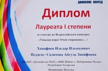 Наши дети продолжают радовать нас своими успехами! Согласно итогам Всероссийского конкурса «Унылая пора! Очей очарованье…» от АНО "Центр комплексного развития детей "Движение вперёд" воспитанник 7 группы Ханафиев Ильдар награждён дипломом лауреата I степени за работу "Сова" в номинации "Поделка". Старания и целеустремлённость, мастерство и оригинальный творческий подход Ильдара к работе были высоко оценены членами жюри конкурса. Поздравляем Ильдара и его творческого наставника - воспитателя Салихову Айгуль Занифовну, гордимся успехом и желаем новых ярких побед впереди!