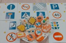 Группа 3. "Дорожные знаки из солёного теста". Цель: закрепить знания о дорожных знаках,уточнить их разделение их группы (предупреждающие, запрещающие, информационно-указательные).