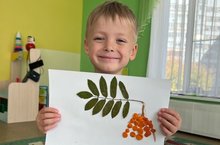 Именины русской рябины отметили ребята 10 группы. С ребятами была проведена беседа о важности дерева для животного мира, о целебных свойствах плодов рябины. За неделю до изготовления поделки - ребята сделали групповой гербарий, собрав листья рябины. Панно, которое изготовили дети, совмещает в себе аппликацию из природного материала, лепку, рисование.