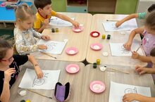 Ребята 10 группы на очередном занятии кружка по рисованию освоили нетрадиционную технику рисования клеем и солью с воспитателем Динарой Дикатовной, порисовав на тему "Улитка". -