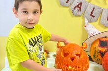Приближается один из самых веселых и страшных праздников — Хэллоуин, который так нравится детям! Хэллоуин — последний осенний праздник, после которого уже можно начинать ждать Нового года, снега и зимних каникул. Одна любопытная история, которая обычно нравится детям, связана со светильником Джека — тыквенным фонарем со свечой внутри. По легенде, Тыквенный Джек — добрый дух, который бродит в поисках одиноких заблудившихся путников и помогает им отыскать дорогу домой. В хэллоуинскую ночь — тыквенные фонари обязательно нужно ставить на подоконник или у дверей, чтобы все домашние поскорее собрались под одной крышей. Ну а мы ждём от всех различные поделки из тыквы для выставки-конкурса "Самая страшно красивая тыква". Активный участник конкурса - воспитанник 4 группы Фаррахов Тимур.