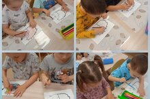 Дети 2 и 4 групп на очередном занятии занимались раскрашиванием ёжика под руководством воспитателя Лиры Зуфаровны. -