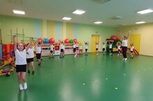 Ребята 8 группы бодро начинают свое утро с инструктором по физической культуре Зайнап Динаесовной. -