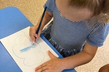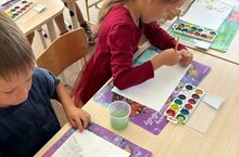 На своём первом занятии по рисованию с воспитателем Ильвирой Ильдусовной воспитанники 5 группы рисовали дождь пальчиками. -