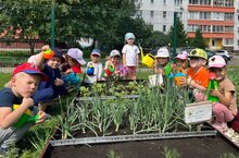 Не первый год радует наших воспитанников и педагогов огород на территории детского сада. Благодаря ему происходит непосредственный контакт детей с объектами природы, происходит живое общение с ней, наблюдение и практическая деятельность. Дети всех возрастных групп принимают посильное участие в работах на огороде. Даже самые маленькие наши воспитанники с удовольствием наблюдают за трудом старших детей и стараются им помочь. В процессе трудовой деятельности дошколята наблюдают за ростом и развитием растений, определяют их зависимость от внешних факторов, от ухода и т. д. И вот долгожданный прекрасный урожай на столе у наших ребят - на нашем огороде созревают огурцы, кабачок, редис, перец, томаты!