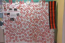 Воспитанники всех групп, сотрудники ДОУ приняли участие в украшении единого полотна, где поместили красную звезду своего героя (прабабушки, прадедушки, участника ВОВ)