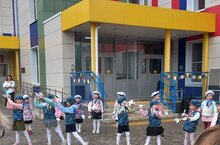 В преддверии празднования Дня Победы в нашем ДОУ прошла праздничная программа «Весна Победы!». Праздник организован на улице с приглашением родителей, представителей старшего поколения. Праздничная программа началась с торжественного парада от центрального входа ДОУ, в параде приняли участие воспитанники всех групп. Первыми по площади прошли самые юные защитники Отечества, воспитанник мл.групп №9,10, затем танковые войска (ср.гр.№1,11), бригада санитарной части (гр.5), войска флота (гр.6), разведывательные отделения (гр.2,3,4), рота десантников (гр.5), элитные войска Вооруженных Сил России ( гр.7,8) Продолжением праздничной программы стала композиция воспитанников подготовительных групп "Дети войны". Каждая группа исполнила творческий номер. Завершила праздничную программу совместная творческая композиция педагогов и родителей на песню "Встанем", акция «Солдатская каша»