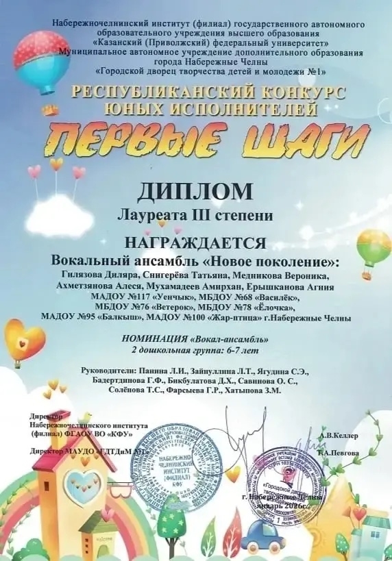 Поздравляем нашу воспитанницу Ерышканову Агнию и музыкального руководителя Зилю Минфенисовну с победой в республиканском конкурсе!