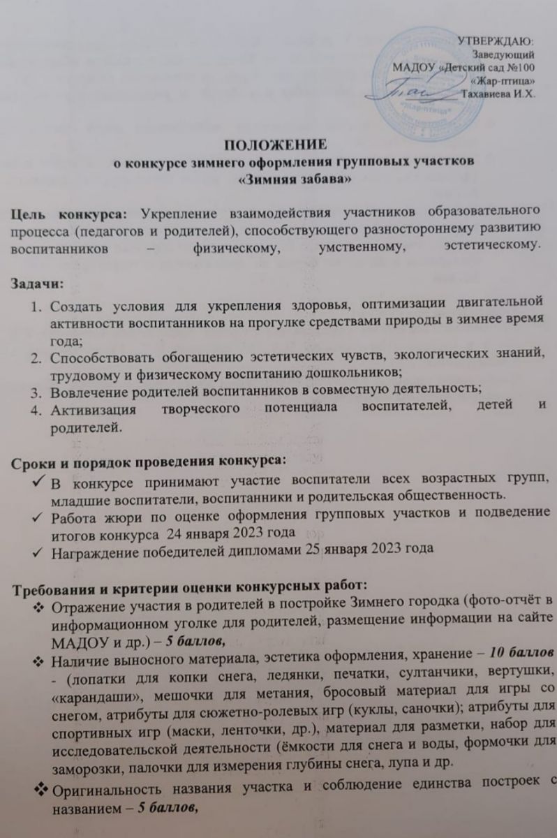 МАДОУ города Набережные Челны «Детский сад общеразвивающего вида с приоритетным осуществлением деятельности по познавательно - речевому направлению развития воспитанников №100 "Жар - птица" / Яр Чаллы шәһәренең “100 нче номерлы “Алтын каурыйлы кош” балаларның танып белү, сөйләм үсешен өстенлекле гамәлгә ашыручы гомумүстерешле балалар бакчасы муниципаль автоном мәктәпкәчә белем бирү учреждениясе