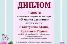 Совсем недавно воспитанники группы №10 Гриненко Родион и Свистунова Майя стали победителями городского конкурса "О маме и для мамы"!!!