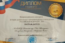Сад принял участие во всероссийском конкурсе "Лучшие дошкольные образовательные учреждения Российской Федерации - 2021". В номинации "За высокое качество образовательных услуг" награжден дипломом лауреата.