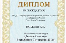 МАДОУ «Центр развития ребенка – детский сад № 104 «Бэлэкэч» города Набережные Челны - победитель республиканского конкурса «Детский сад года Республики Татарстан-2016» 16.08.2016