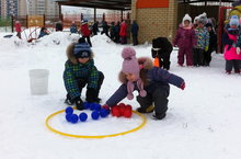 · закрепление навыков метания, катания на санках;