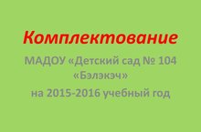 Комплектование МАДОУ «Детский сад № 104 «Бэлэкэч» на 2015-2016 учебный год. 27.03.2015