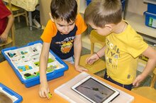 В STEM- лаборатории нашего сада в старшей группе №15 прошло занятие с применением игровой панели "Сенсино" Дождик". Эта панель развивает концентрацию внимания, координации движения пальцев и рук, выдержки. С детьми закрепили пространственные отношения (влево-вправо, вверх - вниз). Сначала на первом этапе дети попробовали дойти до определённой капельки. Потом немного усложнили и работали в паре, нужно было дойти до самого вверха.