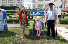 Мероприятие с участием сотрудника ГИБДД, направленное на обучение детей основам безопасного поведения на проезжей части, прошло 4 июня на автогородке ДОУ. Сотрудник ГИБДД показал детям подготовительной группы №6 алгоритм правильного безопасного перехода проезжей части. В конце мероприятия сотрудник ГИБДД подарил детям и педагогам нужные каждому пешеходу световозвращатели и памятки о правилах перевозки детей в автомобилях.