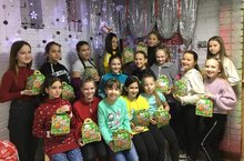 Администрация комсомольского района города Набережные Челны наградила, участвующих в открытии елки детей, сладкими подарками.